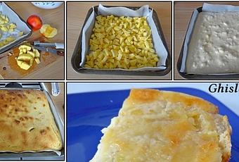 Observation : J'ai laissé cuire à peine 40 mn et par sécurité j'ai mis la pointe d'un couteau pour vérifier la cuisson et le dessus était bien coloré, mais au démoulage et en retournant dans le plat pour avoir mes pommes sur le dessus, je me suis aperçue que la pâte qui recouvrait un peu les pommes manquait de couleur, c'était même blanc sauf sur le contour ... De plus, le gâteau étant encore tiède pour couper les carrés, je sentais bien que le milieu du gâteau était un peu trop mou, donc le temps de cuisson est à vérifier.