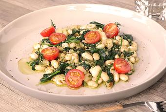 * Mélangez les haricots avec les épinards, les tomates et le pesto.