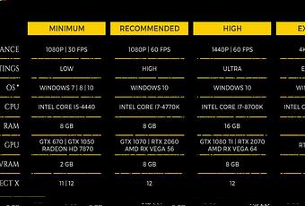 - GPU : GEFORCE GTX 1070 | GEFORCE RTX 2060 | AMD RX VEGA 56