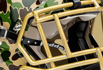 Après plusieurs collaborations fructueuses dans le milieu du sport avec le PSG ou encore avec la marque de tennis Wilson, BAPE revient sur le devant de la scène aux côtés d’adidas avec une nouvelle collection cette fois-ci centrée sur le football américain. On retrouve ainsi une fine sélections d’items avec pour pièce maîtresse un casque de football entièrement recouvert de l’indémodable camo ABC côtoyant un logo aux couleurs du drapeau américain. Deux paires de crampons ADIZERO 8.0 accompagnent le casque ainsi que deux jerseys, deux paires de collants thermiques, une paire de gants et un ballon, tous frappés d’un imprimé camo. Concernant la partie lifestyle, on peut voir deux camo shark hoodies ainsi que deux Ultraboost dans les mêmes tons que le reste de la collection.