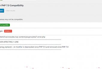 Disponible seulement pour WordPress, le plugin PHP Compatibility Checker examine le code de votre thème et de vos plugins pour trouver les éventuelles incompatibilités. Vous pouvez choisir la version de PHP à vérifier et vous obtenez un rapport détaillé avec les erreurs trouvées.