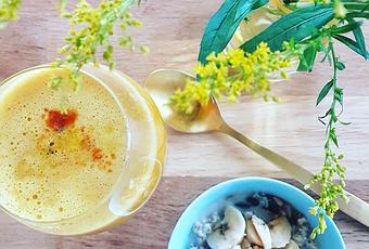 Un matin comme je les aime commence avec un jus extrait à froid et un bircher maison car ils me permettent d’être en forme toute la matinée. Véritable concentré de bonnes choses pour le corps, le birchercontient des flocons d’avoine (riche en fibres et vitamine E, ils réduisent aussi la sécrétion d’insuline et la glycémie) , des graines de chia (riche en fibres et protéines), des graines de courges (riche en protéines) … c’est le petit déjeuner healthy idéal et simple à cuisiner.