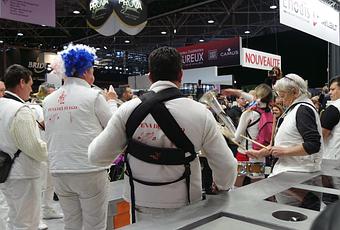 Cuivres et grosse caisse dans l’attente des résultats. Après les Suisses ce matin, les supporters français font le show. Ambiance terrible sur le Sirha. Du jamais vu. Une compétition XXL dans un esprit de fête. C’est aussi cela, le Bocuse d’Or.