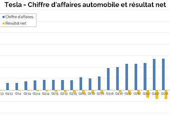 Tesla annonce pour ses activités automobiles un chiffre d'affaire de 6.323 miliard de dollars, en hausse de 3.7% par rapport au trimestre précédent, et un résultat net de 210 millions de dollars, en baisse de 17.5% et représentant une marge bénéficiaire nette de 3.3%. La société a pour la première fois enchaîné deux trimestres rentables consécutifs.