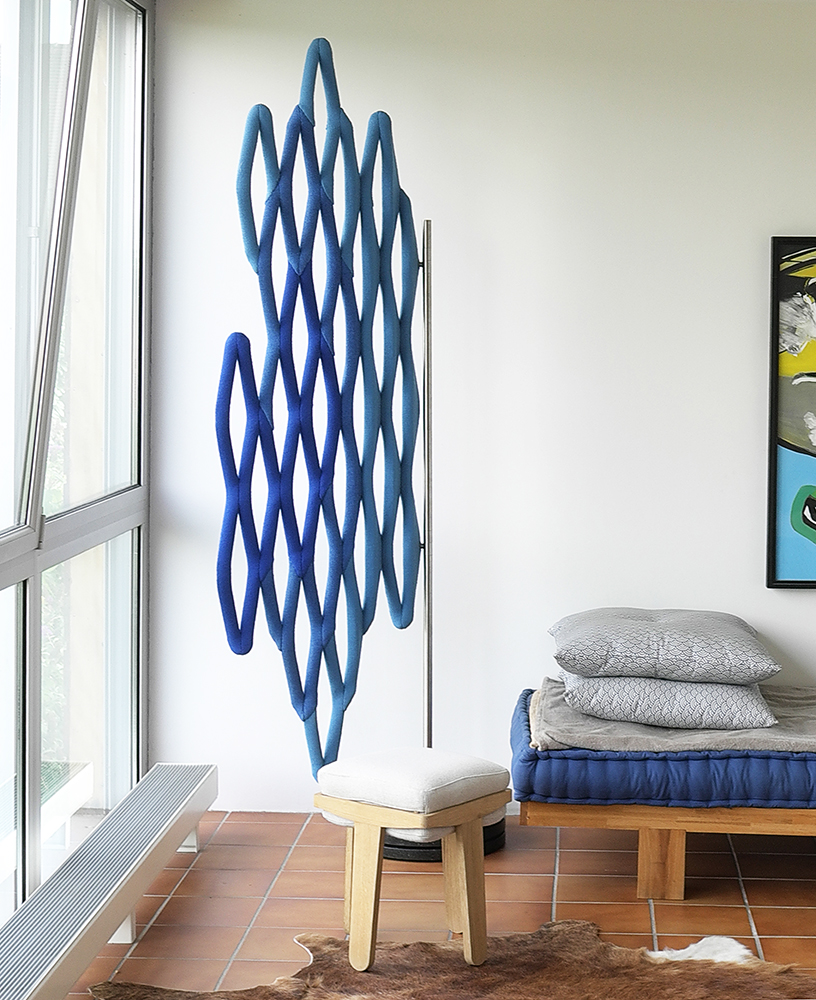 Non sans nous rappeler le système de cloisonnement du même nom mené en collaboration avec Renaud Marin, compagnon tapissier, et avec le soutien de l’industriel bourguignon Métal Déployé, et de la Fondation d’Entreprise Banque Populaire. Les formes et lignes de la banquette sont directement liées.