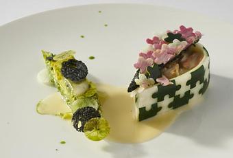Bref, au vu de ce qu’ils ont réalisé les « Danes » marquent les esprits. Il n’est que ce doute qui nous effleure, ils ont contourné une difficulté majeure en ne présentant pas une chartreuse de légumes qui devait faire 20 cm, mais un assemblement de huit chartreuses, qu’il suffisait de séparer avec un petit couteau (voir ci-dessous) là où d’autres équipes ont galéré lors de la découpe. Fins connaisseurs du règlement (quatrième participation de leur coach, Rasmuss Kofoed), les Danois ont su jouer avec la ligne rouge, et le jury ne l’a pas sanctionné puisqu’ils sont premiers pour l’assiette. C’est de bonne guerre, dirons-nous. Sur 24 équipes 21 utilisaient des moules ronds, eux ont innové. De plus, l’assiette elle-même participait au décor. Ils ont tout bon.