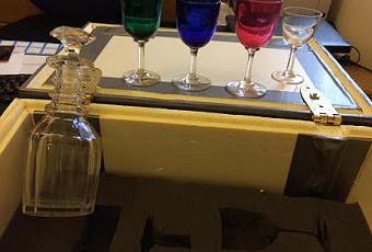 et là, ce sont les verres qu'il utilisait à l'époque, précieusement conservés avec quelques autres objets par le conservateur du domaine dans lequel il a vécu.