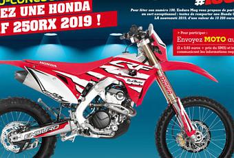 A l'occasion du Numéro 100 d'Enduro Magazine (sortie au mois de Décembre dernier), nous souhaitions marquer le coup et avons décidé d'organiser un jeu concours permettant à nos lecteurs et lectrices de gagner une Honda CRF 250RX 2019 d'une valeur de 10 299€.