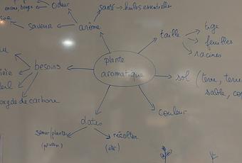 J'ai co-animé une séance avec une collègue de SVT pour les Ulis : ils commencent un projet sur les plantes aromatiques. Ils vont devoir faire une fiche technique d'une plante puis la semer et la récolter, et ensuite la cuisiner. (on a une section ERE - Espace Rural Environnement, ainsi qu'une section HAS - Hygiène Alimentation Service). Cette première heure, nous avons défini ensemble les critères de description d'une plante aromatique, en créant une carte mentale.