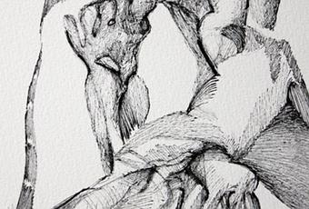 Durant trente années, Jacques Rouby a accumulé une production gigantesque en toute discrétion, dans la solitude et, pourrait-on ajouter, la clandestinité de ses ateliers successifs. On peut l’aborder par le dessin où, au centre de la feuille immaculée et d’un trait aussi fin que net, des corps suggérés s’enchevêtrent, s’agglomèrent, se mêlent à des formes inquiétantes, tutoyant celles de quelques monstres infernaux ou plutôt échappés de mondes aussi intérieurs que parallèles. Dans d’autres dessins, cette fois souvent colorés, de nouvelles formes, abstraites, animalières ou anthropomorphes occupent tout l’espace, aucune place n’étant laissée vierge.