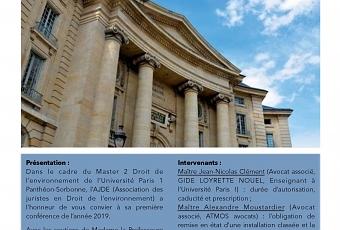 L'Association des juristes en droit de l'environnement (AJDE) organise ce jeudi 7 février 2019, dans le cadre du Master 2 Droit de l'environnement de l'Université Paris I Panthéon-Sorbonne, un colloque consacré au sujet suivant : "ICPE et temporalité". Maître Laura Picavez interviendra sur la question de la réforme de l'autorisation environnementale.