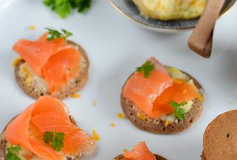 Blinis express à la châtaigne, truite fumée et beurre à l'orange