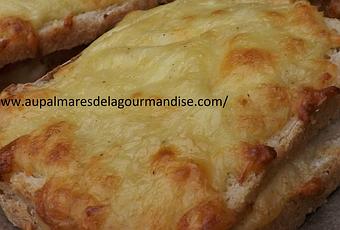 Prendre une autre tranche de pain la déposer sur la précédente, y poser une autre cà soupe du mélange crémé,puis saupoudrer du gruyère restant, renouveler jusqu'à épuisement du stock.