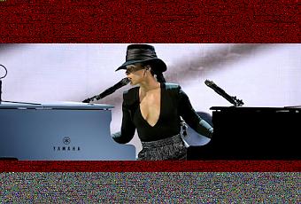 Même si nous n'avons pas ete particulièrement impressionnés par la qualité de la musique qui nous y était présentées, en tant qu'homme, j'ai été frappé par le grand nombre de décolletés plongeants et par l'absence totale de soutiens-gorge parmi le contingent féminin et particulièrement de la part d'Alicia Keys qui animait la manifestation.