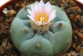 Les “boutons à mescal” de ce cactus contiennent des alcaloïdes isoquinoléiques et des dérivés de la phenyl-éthylamine, notamment la mescaline, puissant psychotrope, ce qui rend la plante hallucinogène. Les Amérindiens, depuis des millénaires, pratiquent un rite ancestral à partir de ce cactus, qui provoque un véritable rêve éveillé, avec des visions colorées accompagnées d’hallucinations auditives, qui permettraient d’entrer en contact avec l’au-delà et de prédire l’avenir. Les Huichols, peuple indigène du Mexique perpétuent encore aujourd’hui le rite du peyotl, toujours en groupe, ce qui tend à le rendre plus rare lorsque toute une communauté le cueille dans la nature alors que sa croissance est lente. Pourtant, il est protégé par CITES (Convention sur le commerce international des espèces de faune et de flore sauvages menacées d’extinction).