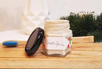 Ingrédients : 🌿 3 cuillères à soupe d'huile de coco : si elle est à l'état solide en raison des faibles températures, je vous recommande de la faire fondre au préalable. L'huile de coco a des vertus anti-bactériennes et anti-fongique pour la bouche, en plus d'avoir un pouvoir blanchissant.🌿 2 cuillères à soupe de carbonate de calcium : comme son nom l'indique, il apporte du calcium et est un abrasif doux pour l'émail.🌿 1 cuillère à soupe d'argile blanche : l'argile blanche est un abrasif doux, qui absorbe les toxines.🌿 1 cuillère à café de bicarbonate de soude : abrasif doux également, il dispose d'un PH basique.🌿 30 à 40 gouttes d'huile essentielle : personnellement, je mets 15 gouttes d'HE de menthe poivrée et 15 gouttes d'HE de Tea Tree. Attention, ces deux huiles essentielles ne conviennent pas aux enfants et aux femmes enceintes : remplacez-les par de l'HE de citron si besoin. 🌿 1 pincée de sel : pour la santé des gencives.