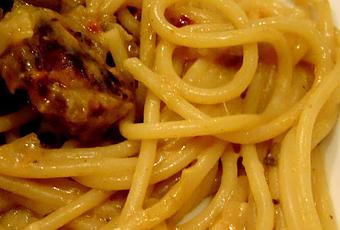On amalgame à des spaghettis cuits.