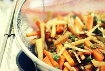 Éplucher les carottes, le navets. Les couper en bâtonnets