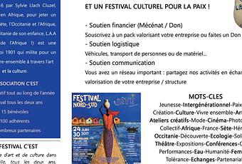 Un beau projet porté par une association courageuse et volontaire qu'il convient d'aider ! Et sponsoriser une telle manifestation, ce n'est pas que donner de l'argent (même si l'association en a bien besoin), c'est aussi participer en aidant à la vie du Festival - en transportant ou accueillant des invités, en donnant ou prêtant du matériel, en devenant bénévole ou plus simplement en en parlant autour de vous !