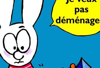 Cet album est un bon moyen pour les enfants de dédramatiser ce moment dur et de leur montrer, au contraire tous les avantages, s'il y en a : les nouveaux copains, un endroit plus grand. Si au départ, nos deux lapins ont bien du mal avec ce nouveau départ qui ne leur plaît pas, Simon finira par trouver les mots justes, des mots d'enfant, pour apaiser la peur de son petit frère et la sienne également.