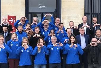 Autour de Catherine PRADAL-CHAZARENC, 1ère maire-adjointe de la Ville de Caen chargée des Ressources Humaines et Patrick LECAPLAIN, 1er Rapporteur Général de la Communauté urbaine Caen la mer, les agents de l'ASAT Caen la mer ont présenté leur équipe, en présence des deux parrains qui les accompagnent dans le défi sportif et humanitaire : le Professeur Bruno HURAULT de LIGNY, ancien chef de service de néphrologie-dialyse-transplantation, spécialiste du rein au CHU de Caen-Normandie et Maxime BEAUSSIRE, boxeur professionnel normand.