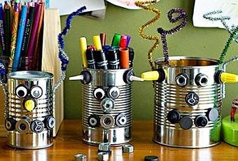 Pour faire un pot à crayons ou à maquillage par exemple, c’est très simple ! Dans un premier temps, il suffit de laver la boîte de conserve et d’enlever, en faisant attention, la partie coupante. Une fois la préparation effectuée, il n’y a plus qu’à décorer la boîte avec un peu de tissu, quelques paillettes, un pot de peinture et une bonne dose de créativité. Si vous aimez le do it yourself, gardez aussi vos bocaux en verre pour les transformer en luminaires, rangements astucieux, terrariums, porte-savons…