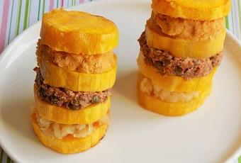 Je les ai superposés en terminant avec une tranche de courge.