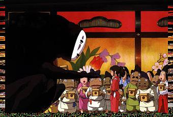 Il m’en donna des sueurs froides, celui-là. Avec son absence totale d’expression, avec ses gémissements plaintifs, avec ses mains qui promettent l’or et arrachent la vie, il paracheva le délire horrifique dans lequel me plongea le film. Rien qu’à écrire ses lignes, je me rappelle encore l’effroi qui me saisit lorsque je le vis, et le geste et la voix que ma sœur s’amusait par la suite à contrefaire, sachant le malaise qu’elle m’inspirait ce faisant.Néanmoins, je survécus. Indemne, je n’en suis pas certain. Je mis bien des années (comme pour La Légende de Sleepy Hollow) avant d’accepter de revoir Le Voyage de Chihiro. Le second visionnage me révéla des strates allégoriques qu’aveuglé par le sens premier des images je ne percevais pas lors du premier. J’imagine sans mal que Chihiro constitue l’un des points d’orgue de la filmographie de Miyazaki. Que dans une œuvre d’une telle force se condensent presque tous les thèmes abordés par le cinéaste au long de sa carrière, avec une efficacité formelle redoutable. Mais voilà : mon impression première demeure. Sans doute me faudra-t-il du temps – et beaucoup de visionnages – avant que je n’accepte tout le brio de Chihiro.