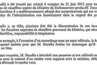 Dans le rapport d'enquête du Sénat, il y a la lettre de licenciement de Benalla du ministère d'Arnaud Montebourg.