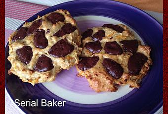 - 30g de chocolat noir à pâtisser, concassé en grosses pépites- 1/2 cuillère à café de levure chimique