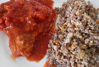 J'ai servi la viande avec des légumes secs gourmands (lentilles, blé, pois cassés) de chez Tipiak®. Les assiettes se sont vidées sans problème, c'était bien bon.