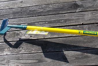 Bon, vu ma petite taille et celle du manche, il est évident que je ne peux pas travailler le dos droit avec cette binette. Mais, lorsque j'aurais coupé un morceau du manche et remis la poignée ergonomique, tout sera parfait, je pourrais l'utiliser correctement.