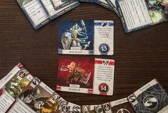 Une fois n’est pas coutume, Héros de Terrinoth est un jeu qui va vous plonger dans l’ambiance des célèbres Donjons e& dragons. Vous allez incarner un héros et, aux côtés de vos compagnons, essayer de détruire les Forces du Mal. Entièrement coopératif, le jeu est présenté sous forme de jeu de cartes. Vous allez devoir choisir un scénario parmi les 8 proposés. Il vous faudra faire la mise en place indiquée sur ce dernier. Et enfin vous allez choisir votre héros en fonction de sa classe et des caractéristiques qui vous inspirent le plus. A moins de 4 joueurs, vous aurez une petite fiche supplémentaire vous donnant un peu plus de pouvoir pour équilibrer le tout et vous donner une chance de réussir le scénario.