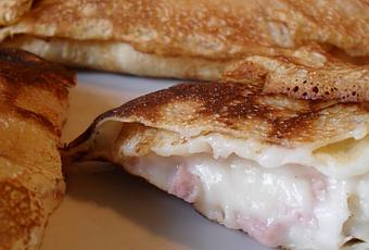 De bonnes crêpes fourées avec une garniture à la béchamel et au jambon.