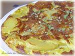 Voilà un plat qui, en principe, met tout le monde d'accord. D'aucuns diront que c'est une bête omelette aux pommes de terre... que nenni ! C'est plus épais qu'une omelette, et puis, euh, c'est une tortilla, non mais ! Après l'avoir vue sur plusieurs blogs culinaires, le mois dernier, j'ai été si tentée que je m'y suis mise aussi. En Espagne, ils font des tortillas à tout, aux poivrons, à la crevette... ici, pour 4 parts, j'ai mis :
