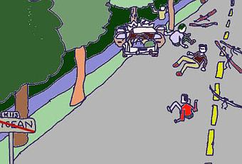Ce qui reste très clair dans mon esprit, c’est qu’il avait beaucoup plu la nuit précédente et que 20 kilomètres seulement après avoir quitté notre hôtel, à Gigean, la route à deux voies était littéralement inondée et comme elle se trouvait en léger devers, les roues gauches de la voiture partirent en aquaplaning et l'auto se trouvait violemment projetée contre un des nombreux arbres qui bordaient la route.