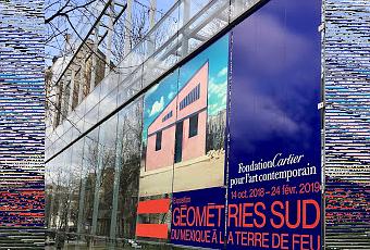 Mon avion avait atterri il y a quelques jours et l'affiche de cette exposition de la Fondation Cartier m'a sauté aux yeux. Géométries Sud du Mexique à la Terre de Feu, voilà un intitulé qui ne pouvait que m'attirer.Il s'agit essentiellement d'architecture, en toute logique dans ce bâtiment conçu par Jean Nouvel et qui est un défi esthétique.