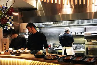 L’équipe du chef Yasuo Nanaumi en action dans les cuisines au Restaurant AO Izakaya