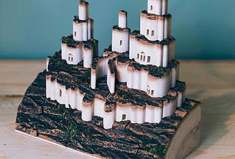 Avec un système télescopique, la sculpture se déploie pour donner vie à une architecture empilée comme une poupée Russe. À la manière d'une longue vue, la sculpture télescopique se remet en place dans la bûche tel un tour de magicien. Vous pouvez retrouvez ces créations sur la page Etsy dédiée. On y retrouve un large choix de " châteaux magiques " en bois avec des prix allant de 13 à 100 euros.
