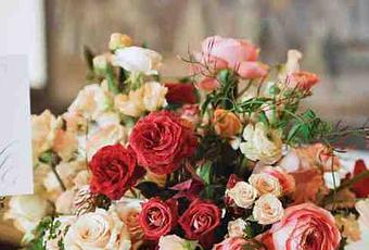 Rendez romantique, vos centres de table avec cette magnifique création, une pièce maîtresse avec un concentré de feuilles de laurier, de grenades, de renoncules, de scabiosas, de fleurs sauvages et de vignes passionnées. Biens-sûr, il y a des roses de qualité diverses que vous pouvez ajouter.
