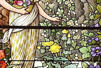 Voici le détail d’un vitrail réalisé par les frères OTT, peintres-verriers strasbourgeois.