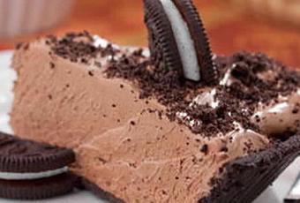 Enfin servez votre tarte en décorant avec des biscuits oreo et chocolat en poudre, coupez et servez.