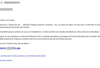 Et ici, nous ne sommes pas des n°, on s'appelle par nos prénoms, on nous invite à échanger préalablement, par message ou via le téléphone qui est donné, ce qui sera fait par l'un ou l'autre dans la plupart des cas, permettant ainsi de créer une proximité, de poser toutes les questions nécessaires ou annexes, bref, de préparer au mieux le séjour et l'accueil physique. L'email est joliment mis en page, quels infos pratiques sans me relister l'ensemble des conditions générales de ventes, et bien entendu les fameuses "biiiiiiiiiip" proposées à proximité.