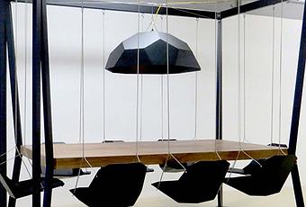 Parce que les designers du studio anglais Duffy London sont des grands enfants, ils ont imaginé une table de réunion où les sièges sont suspendus à une structure en acier et vos permettent ainsi de vous balancer (légèrement bien évidement).