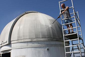 Hubert Zitt est connu pour ses conférences sur Star Trek ou encore Star Wars, et il fait maintenant aussi le bonheur des riverains et des touristes venus photographier l'observatoire. Une idée peut-être inspirée par ce Bunker dans un parc de Prague lui aussi transformé en R2-D2 il y a quelques années.
