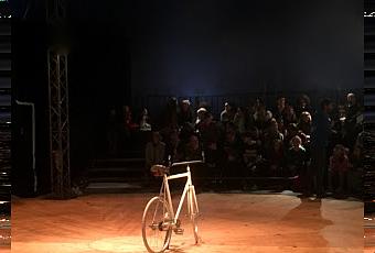 Récemment sortis du Centre National des Arts du Cirque, Jean Charmillot (vélo acrobatique) et Jérôme Galan (sangles aériennes) vont nous raconter l'avant, le pendant et l'après sans aucune parole ... mais rien ne nous échappera. La musique fait suite au grincement du bois. Elle est présente mais sans s'imposer. C'est un des charmes de ce spectacle qui, pour une fois, est concentré sur l'action sans que l'oeil du spectateur soit distrait par ce qui se passe dans les coulisses.Du coup on ne perd rien de leurs mouvements ni de leurs intentions. On lit en eux comme dans un livre et leur art de "tourner en rond" devient limpide. Chacun a sa spécialité mais -et cela participe au charme du spectacle- ils ne sont pas enfermés dans leur discipline et sont capables de s'imposer sur le terrain de l'autre.La scénographie est très intelligente, évoquant l'auto-stop, l'arrêt sur image, l'incruste, les rapports de forces, une crucifixion, ... chaque scène ajoute un chapitre à l'histoire qui se construit sous nos yeux sur les deux axes, horizontal et vertical.On n'a jamais vu cela : un acrobate qui évolue au-dessus de nos têtes, au-delà du diamètre de la piste. Les artistes semblent défier les lois de l'apesanteur. Comme leurs envols semblent faciles ! Ils se jouent aussi de la vitesse, capables de tourner au ralenti comme à plein régime. Et on ne se lasse pas un instant. Pour avoir moi-même fait un vol plané (absolument pas par goût pour le cirque) au-dessus d'une portière de voiture qui s'est ouverte sans prévenir je peux vous dire combien un accident est un moment grave. Il n'est pas ici minimisé ni tourné en dérision. Et pourtant l'humour et la légèreté sont de mise, faisant de chaque spectateur un complice conquis qui applaudit leurs démonstrations de forces comme leur sens de l'équilibre. Et qui rit beaucoup, par connivence et par plaisir.Ce premier spectacle est très réussi. Le duo sait savamment doser la drôlerie, la poésie et la légèreté. Si l'un supplante l'autre ce n'est jamais longtemps. Ils sont en miroir ou en décalage, à l'unisson ou en inversant les rôles, toujours dans une grande fluidité. Il y a du Tati dans leur interprétation. Leur compagnie, La Quotidienne, porte bien son nom et nous parle de choses simples.En voiture, à cheval ou à bicyclette, ces deux circassiens auront séduit tout le monde, même les jeunes spectateurs de 5 ans ... dont je ne suis pas sûre qu'ils sachent déjà faire du deux roues sans stabilisateur.A voir et revoir pour comprendre le double sens du terme "gravité". A savoir : on peut revenir avec son billet pour seulement 5€.