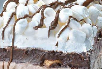 Battez la crème avec le sucre dans un saladier en utilisant le batteur électrique puis faites sortir votre plat, étalez une couche en dessus et décorez avec les guimauves.