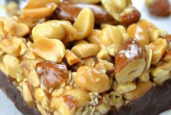 barre amande cacahuètes au chocolat, un délicieux gâteau énergétique pour votre dessert ou collation.