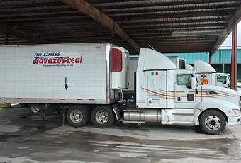Les camions mexicains traversent la frontière pour livrer et recharger la marchandise. Ici à McAllen Texas, dans un des nombreux entrepôts qu'il y a le long de la frontière. Même si depuis quelques années certains mexicains s'aventurent loin de la frontière et même jusqu'au Québec. Ils ont le droit, nous aussi on pourrait aller au fin fond du Mexique ( c'est un accord entre les 3 pays, USA, Mexique, Canada) mais les assurances nous stop.....dommage.