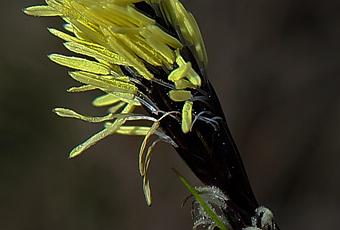 Carex caryophyllea (Laîche printannière) : herbacée vivace à port de graminées ; souche rampante formant des touffes ; feuilles linéaires, canaliculées courtes ; fleurs unisexuées groupées en épis distincts, épi mâle brun terminal, épis femelles sessiles ; bractée engainante ; utricules trigones.